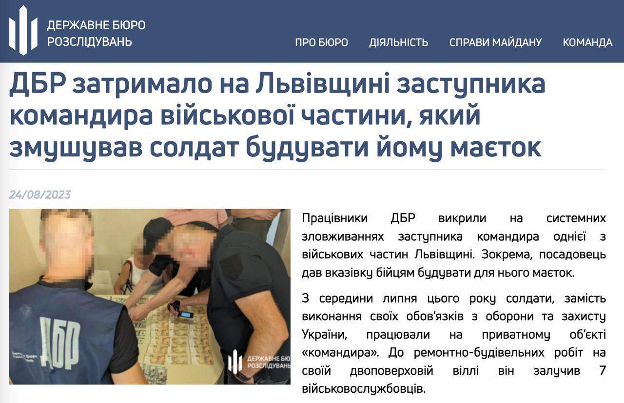 Государственное бюро расследований (ГБР) задержало заместителя командира военной части во Львовской области, который использовал солдат для строительства своего дома.