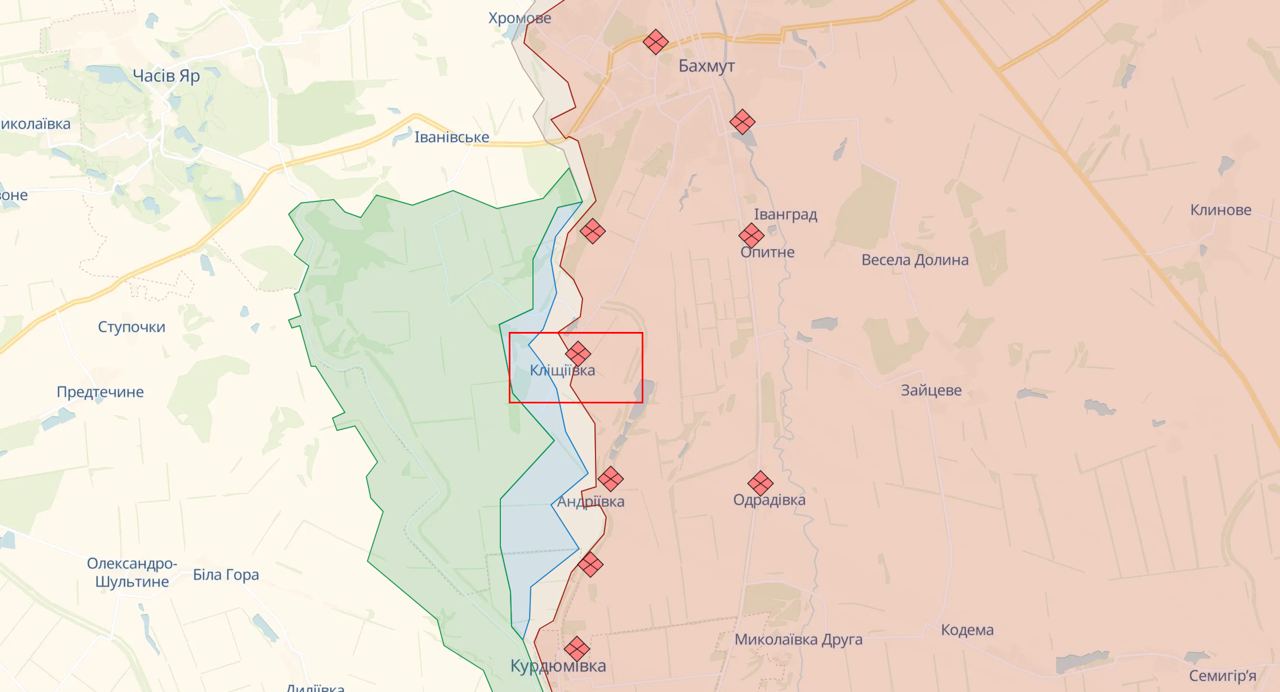 14.15 Под Бахмутом ВСУ вытеснили армию РФ с позиций в центральной части Клещеевки, а также восточнее населенного пункта, сообщает замминистра обороны Маляр.