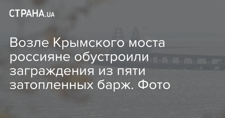 Возле Крымского моста россияне обустроили заграждения из пяти затопленных барж.