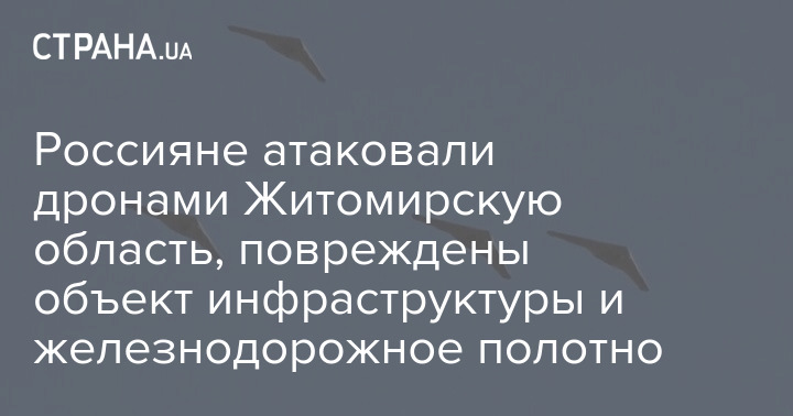 В Житомирской области дроны атаковали один из объектов инфраструктуры. Часть воздушных целей была сбита. Обломками беспилотника были частично повреждены объект инфраструктуры и железнодорожное полотно.