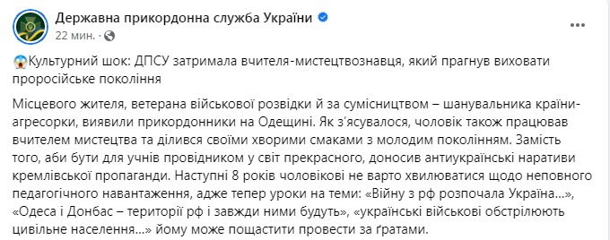 На Одесчине пограничники выявили преподавателя искусства, который "воспитывал пророссийское поколение"