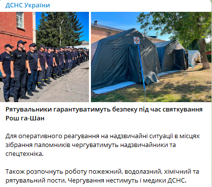 Спасатели будут обеспечивать усиленные меры безопасности во время празднования еврейского праздника Рош ха-Шана в Умани.