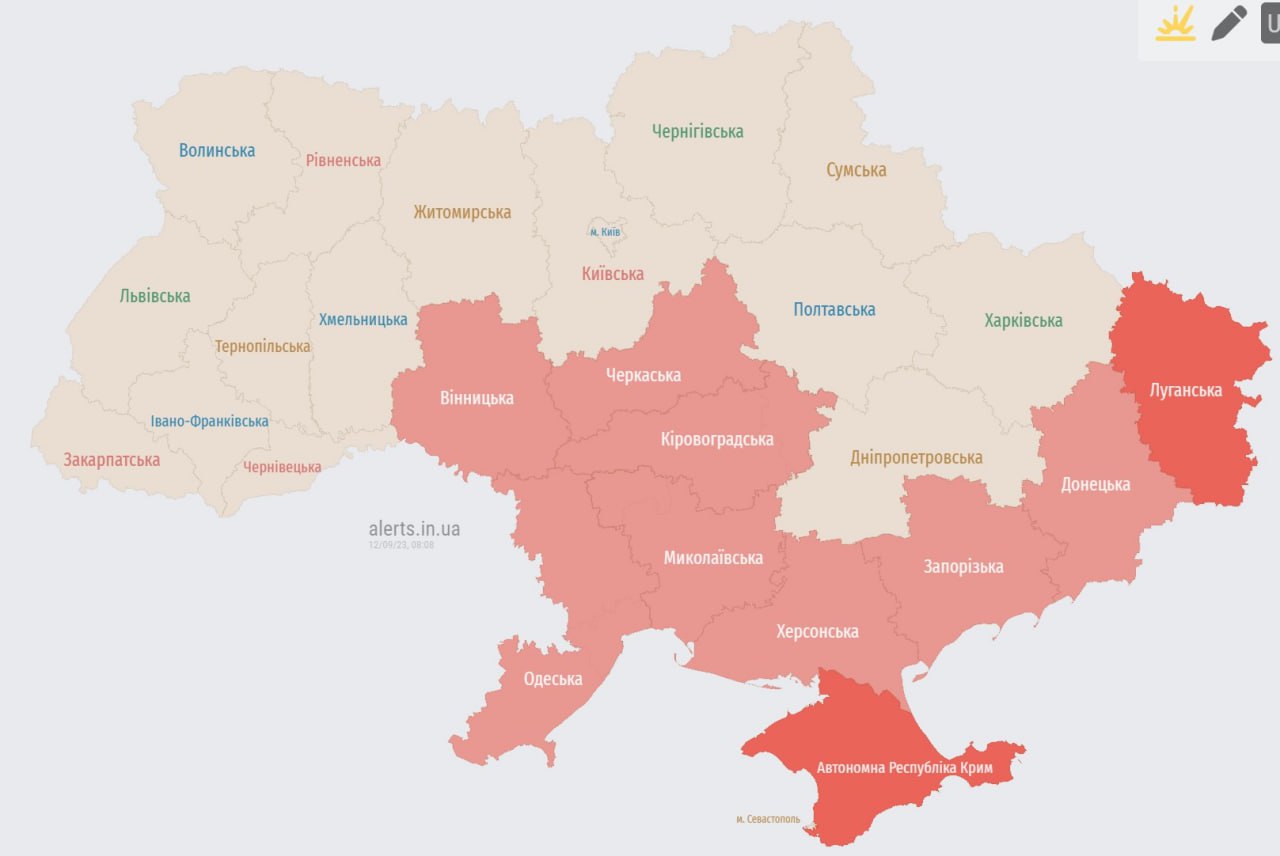 Воздушная тревога в восточной части Украины 12 сентября 2023 года