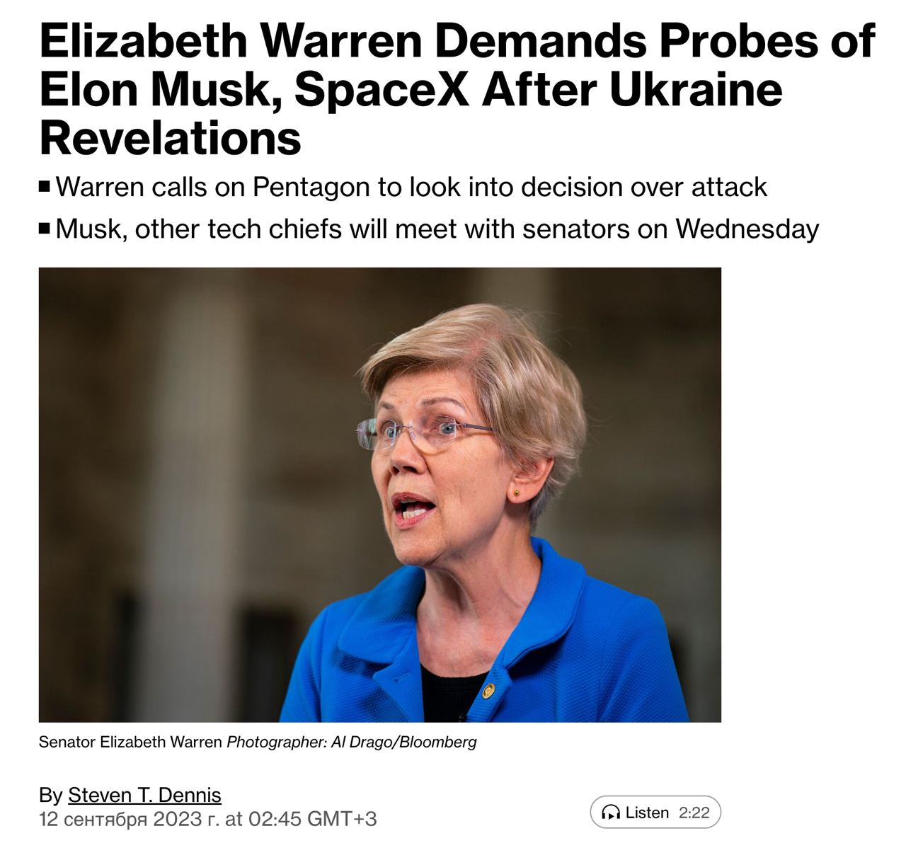 10.02 В США продолжается наезд на Илона Маска из-за его отказа включить Starlink в Крыму, чтобы позволить Украине атаковать российский флот.