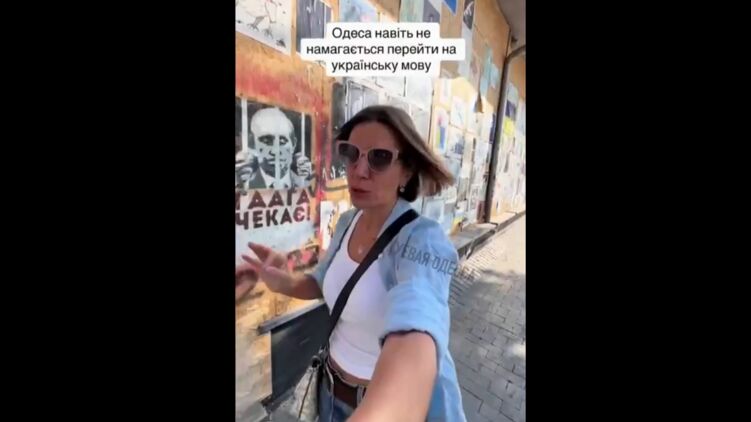 "Одесса меня немного разочаровала. <...> Одесса вообще не переходит на украиский язык. Вот вообще не переходит. <...> Я верю, что в Одессе много патриотов, но что ещё вам нужно, чтобы вы поняли, что говорить по-русски нельзя?" - говорит приезжая.