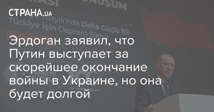 Эрдоган заявил, что Путин выступает за скорейшее окончание войны в Украине, но она будет долгой