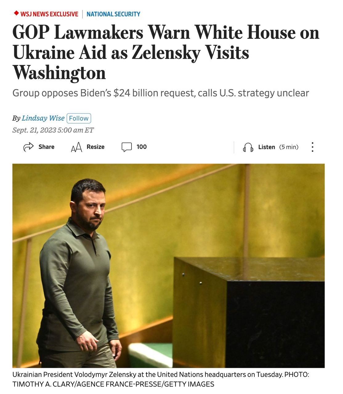 14.45 В преддверии визита Зеленского в Вашингтон группа депутатов-республиканцев направила Байдену письмо о намерении выступить против принятие нового пакета помощи Украине на 24 млрд долл., сообщает Thе Wall Street Journal.
