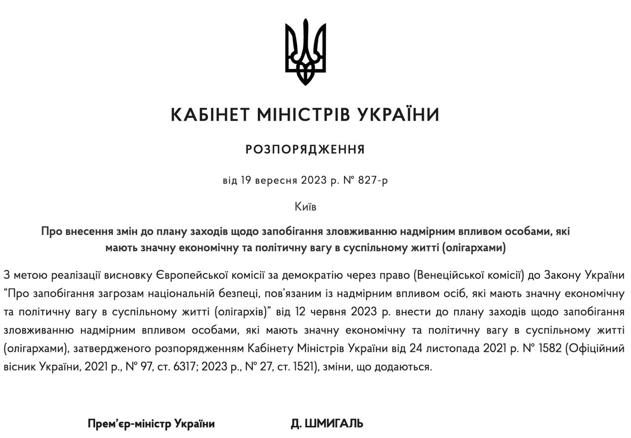 Кабинет министров Украины отложил создание реестра олигархов до окончания войны, как и рекомендовала Венецианская комиссия.