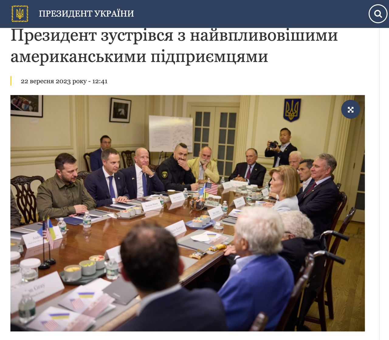 Киссинджер присутствовал на встрече Зеленского с влиятельными американскими предпринимателями, однако в пресс-релизе ОП от 22 сентября он не упоминался. Его можно было узнать на общем фото по затылку.