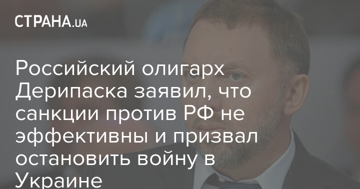 Российский олигарх Олег Дерипаска считает, что санкции не влияют существенным образом на российскую экономику и призвал остановить войну в Украине с обеих сторон.