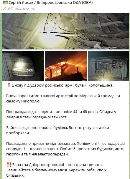 Ночью силы РФ нанесли удар по Никопольскому району Днепропетровской области.