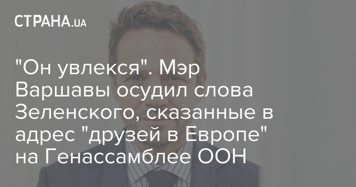 Мэр Варшавы Рафал Тшасковский осудил слова президента Украины Зеленского, сказанные на Генассамблее ООН в адрес Польши.