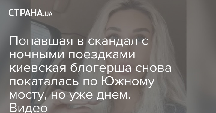 Попавшая в скандал с ночными поездками киевская блогерша снова покаталась по Южному мосту, но уже днем. Видео