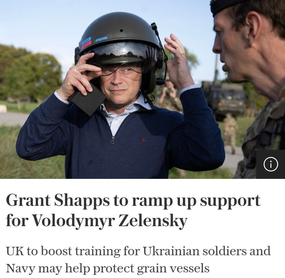 По его словам, ведутся переговоры о переносе программы подготовки под руководством Великобритании "в Украину". Считается, что это будет эффективнее, чем "полагаться на базы Великобритании и других членов НАТО".