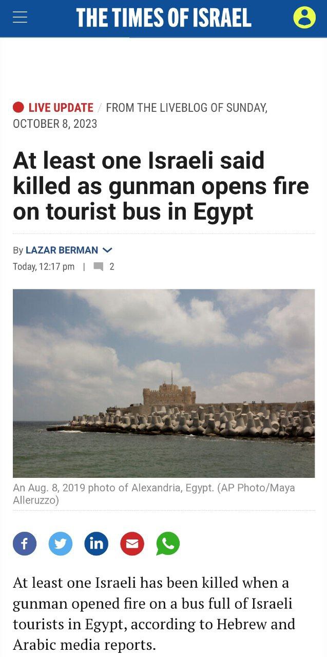 В Египте открыли стрельбу по автобусу с израильскими туристами. Инцидент произошел в Александрии.