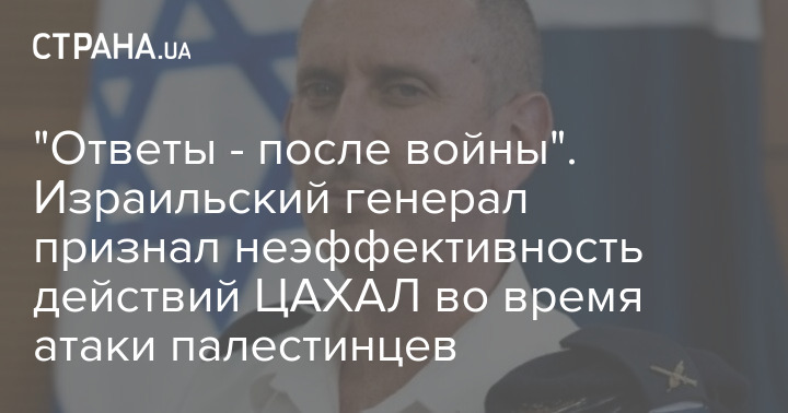 "Ответы - после войны". Израильский генерал признал неэффективность действий ЦАХАЛ во время атаки палестинцев