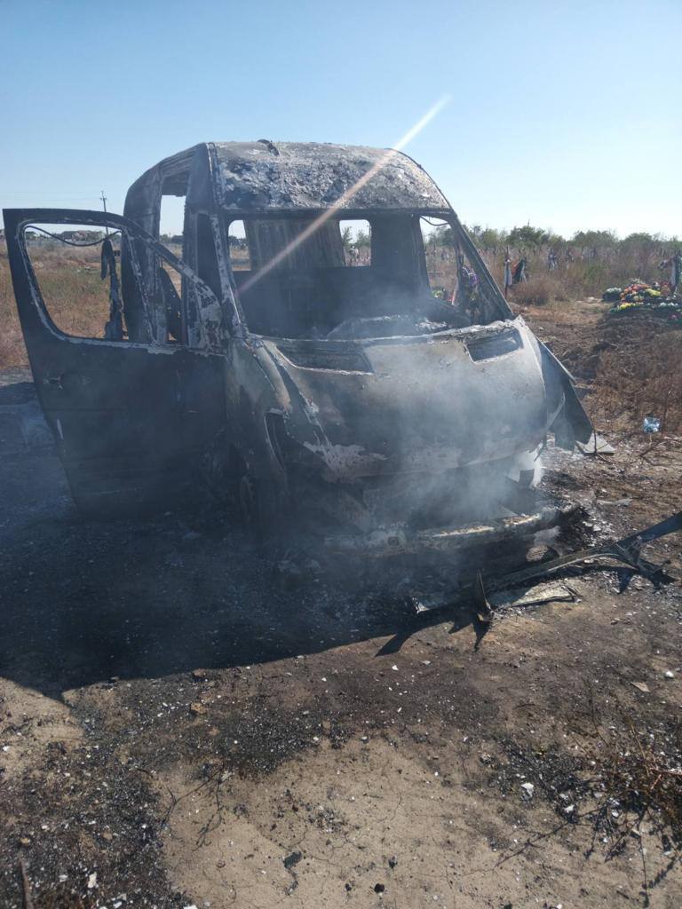 Сегодня российские войска обстреляли кладбище в пригороде Херсона. Российский дрон "Ланцет" поразил ритуальный транспорт с гражданскими лицами во время прощания на кладбище. Три человека получили ранения, один находится в тяжелом состоянии. Микроавтобус полностью сгорел.