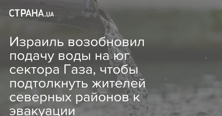Израиль возобновил поставку воды на юг сектора Газа, чтобы побудить жителей севера эвакуироваться на юг.