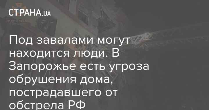 В Запорожье есть угроза обрушения дома, который ночью поразила армия РФ. В результате ракетного удара по городу известно о двух погибших и трех раненых. Люди еще могут находиться под завалами.