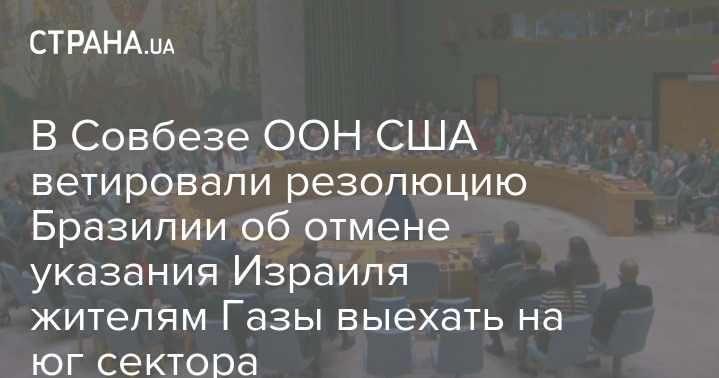 В Совбезе ООН США ветировали резолюцию Бразилии об отмене указания Израиля жителям Газы выехать на юг сектора