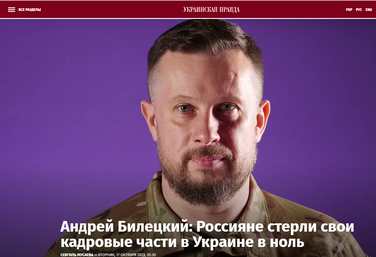 Об этом заявил командир 3-й штурмовой бригады и бывший глава "Азова" Андрей Билецкий в интервью Украинской Правды.