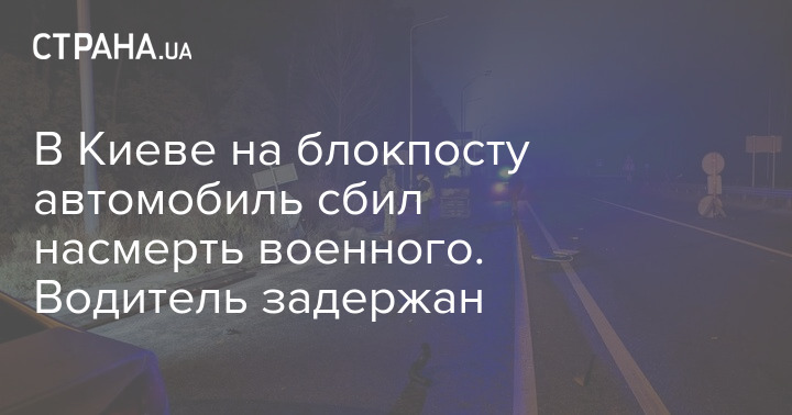 Сегодня ночью в Киеве водитель автомобиля "Хонда" на блокпосту наехал на военного, который погиб на месте.