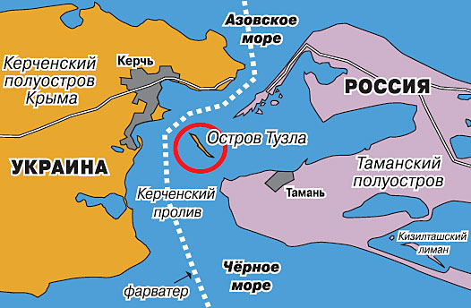 От того, кому принадлежал этот кусочек земли, фактически зависела принадлежность Керченского пролива. Если Тузла украинская, то все, что находится западнее нее (а это и есть фарватер пролива), – тоже украинское; если Тузла – это тянущаяся от Таманского полуострова российская коса, то судоходную часть пролива нужно делить пополам или делать совместным владением.