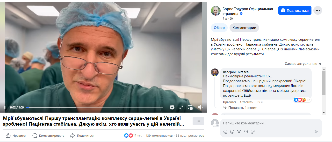 Об этом сообщил врач-кардиохирург, директор Института сердца Борис Тодуров, который провел операцию.