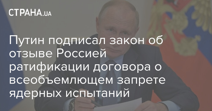 Президент РФ Владимир Путин подписал закон об отзыве Россией ратификации договора о всеобъемлющем запрещении ядерных испытаний.