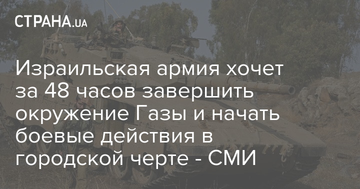 Армия обороны Израиля намерена в течение 48 часов завершить окружение города Газа и начать боевые действия в городской черте.