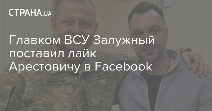 Главнокомандующий ВСУ Валерий Залужный лайкнул пост в Facebook экс-советника Офиса президента Алексея Арестовича, который в последнее время часто критикует власть.