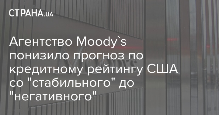 Рейтинговое агентство Moody's понизило прогноз по кредитному рейтингу США со "стабильного" до "негативного".
