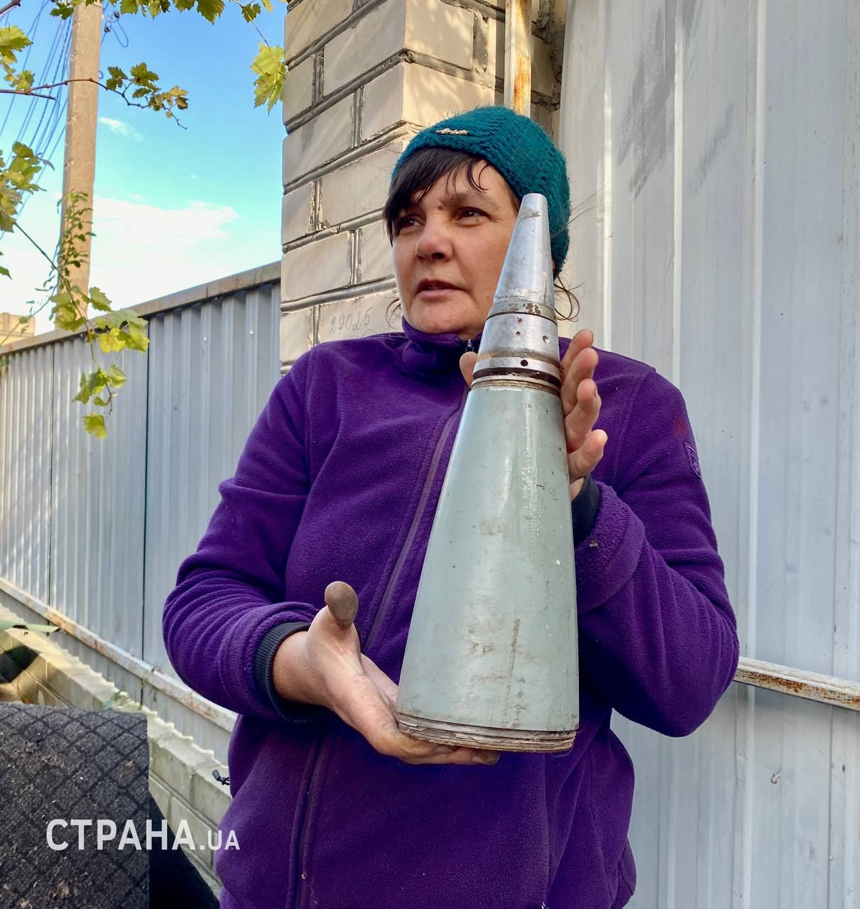 Женщина проживает здесь со своим мужем. Ее дети уехали в Николаев. Ольга с мужем остались присматривать за домом. Говорит, что дома чувствует себя спокойнее, несмотря на постоянные обстрелы.