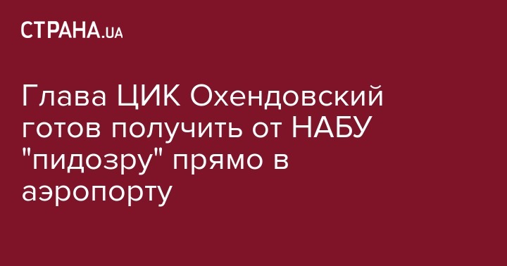 Глава Центральной избирательной комиссии Михаил Охендовский призвал детективов Национального антикоррупционного бюро (НАБУ) сегодня вечером вручить ему подозрение по делу об "амбарной книге" Партии регионов. Местом встречи он назвал аэропорт "Борисполь". Об этом сообщают "Украинские новости".