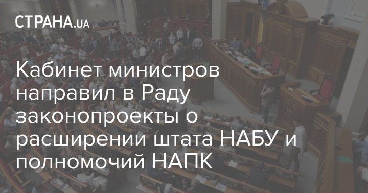 Кабинет министров согласовал и подал в Верховную Раду законопроекты о расширении штата Национального антикоррупционного бюро Украины (НАБУ) и полномочий Национального агентства по предотвращению коррупции (НАПК).