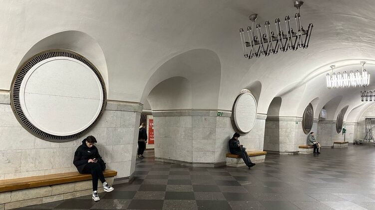 В Киеве на платформе станции метро "Вокзальная" начали работы по маскировке элементов с коммунистической символикой.