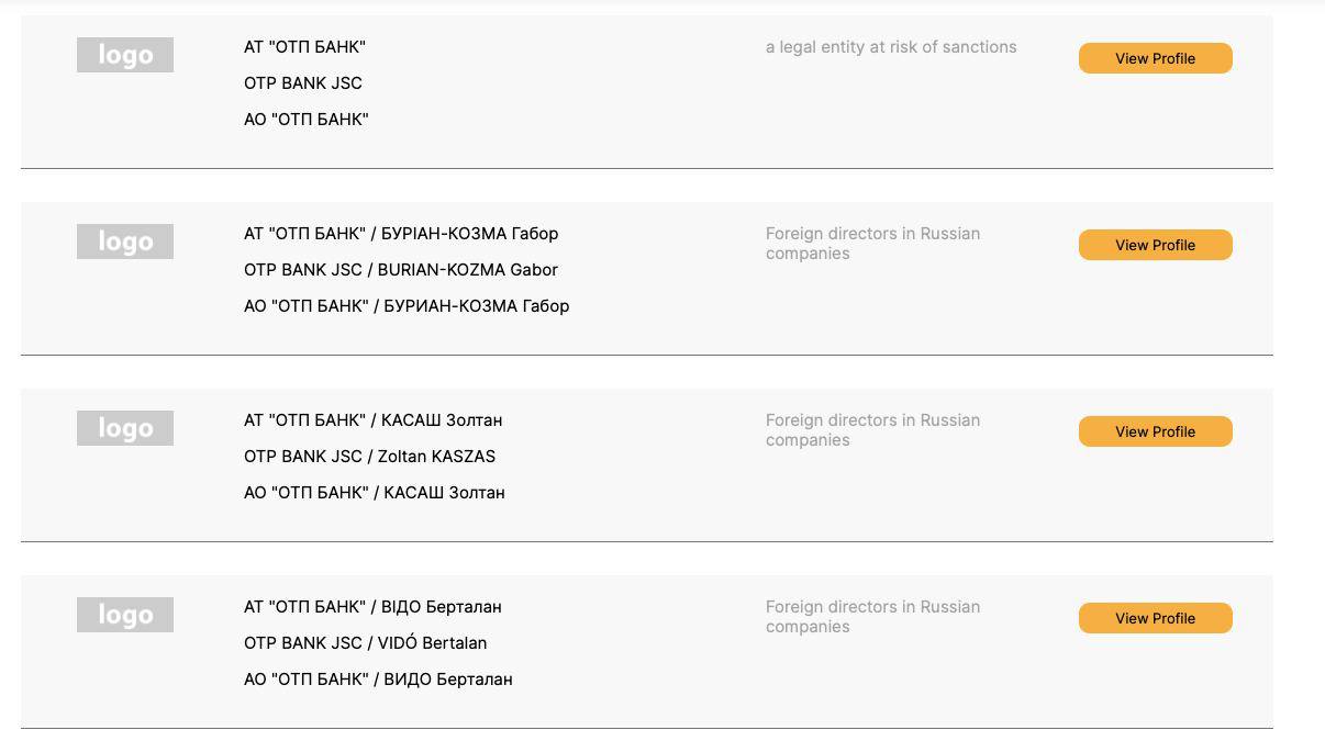 Также, по его словам, в списке все еще значатся российское подразделение OTP и три менеджера венгерских банков (на скрине).