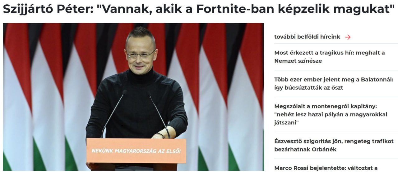 "Есть те, кто страдает военным психозом и воображает себя в Fortnite. По какой-то таинственной причине они думают, что поставки оружия - это способ заключить мир", - заявил венгерский министр.