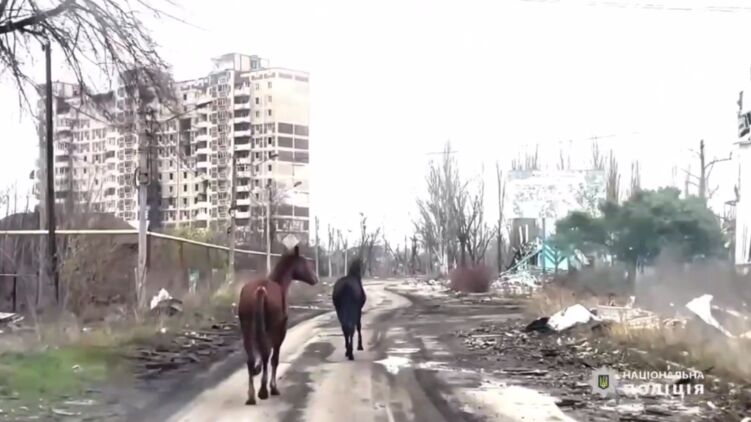 По данным Нацполиции, кони бродили по городу с весны 2023 года, лишившись крова на ферме в Ласточкино, которую тогда разбомбили. Животные одичали и не давались в руки людей.