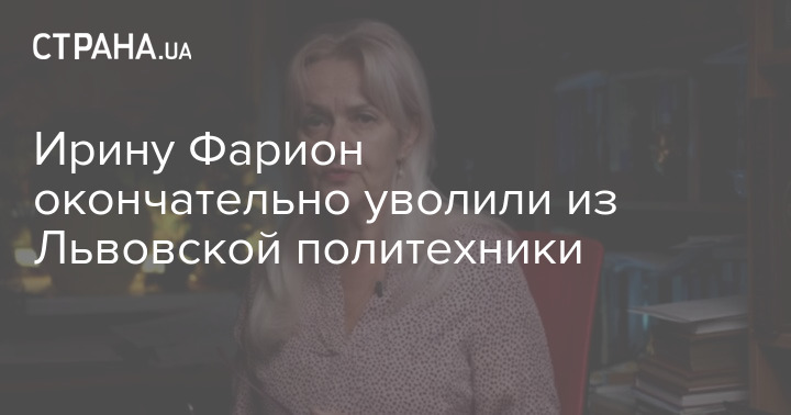 Глава подкомитета по вопросам высшего образования, депутат фракции "Слуга народа" Юлия Гришина подтвердила, что Ирину Фарион окончательно уволили из Львовской политехники, несмотря на исчезновение сообщения об увольнении со страницы учебного заведения в соцсетях.