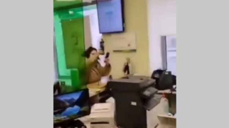 В Подмосковье женщина с криками "Слава Украине" облила зеленкой сотрудников Сбербанка. Видео