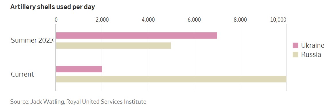 Западные СМИ продолжают писать о нехватке снарядов у ВСУ. России отстреливает их в Украине в пять раз больше, пишет Wall Street Journal.