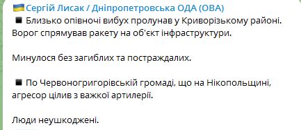 Ночью 23 ноября РФ ударила по Криворожскому району Днепропетровской области.