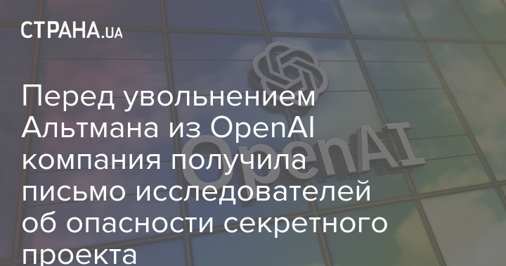 Перед увольнением Альтмана из OpenAI компания получила письмо исследователей об опасности секретного проекта