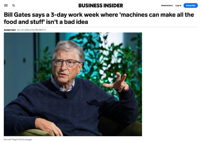 "Если в конечном итоге вы получите общество, в котором вам придётся работать только три дня в неделю, это, вероятно, нормально", - ответил Гейтс на вопрос о том, что ИИ может лишить людей рабочих мест.