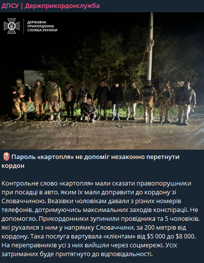 "Контрольное слово "картофель" должны сказать правонарушители при посадке в авто, которым их должны были доставить до границы со Словакией", - говорится в сообщении.