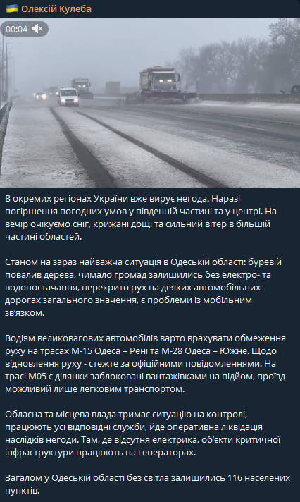 Без света осталось 116 населенных пунктов. Больше всего пострадали Измаильский и Одесский районы.