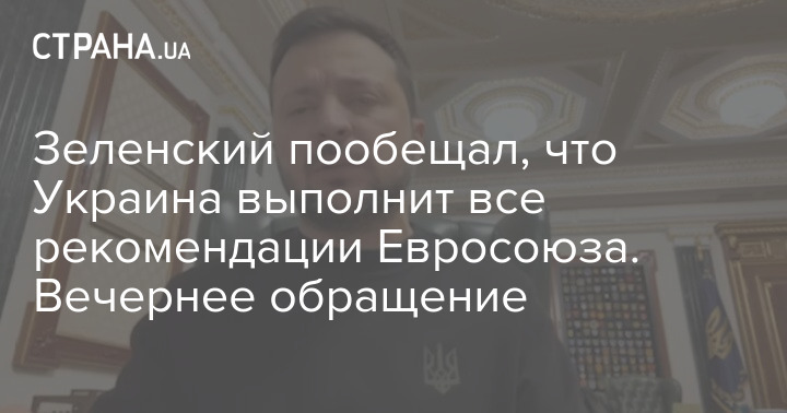 Зеленский пообещал, что Украина выполнит все рекомендации Евросоюза. Вечернее обращение