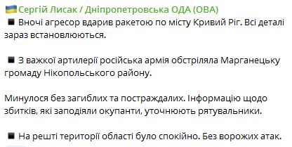 Ночью РФ нанесла ракетный удар по Кривому Рогу