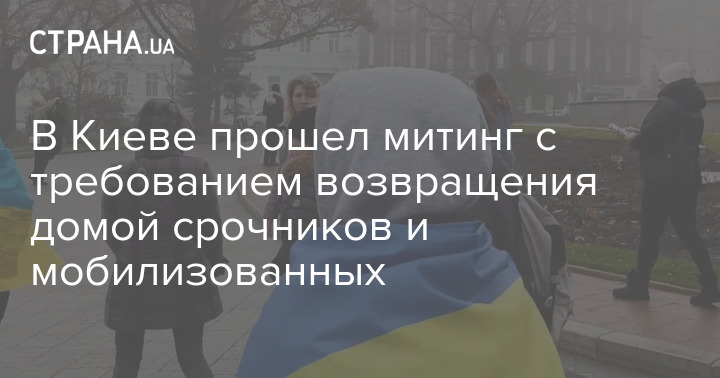 Митингующие под зданием КГГА требуют вернуть домой срочников и мобилизованных.